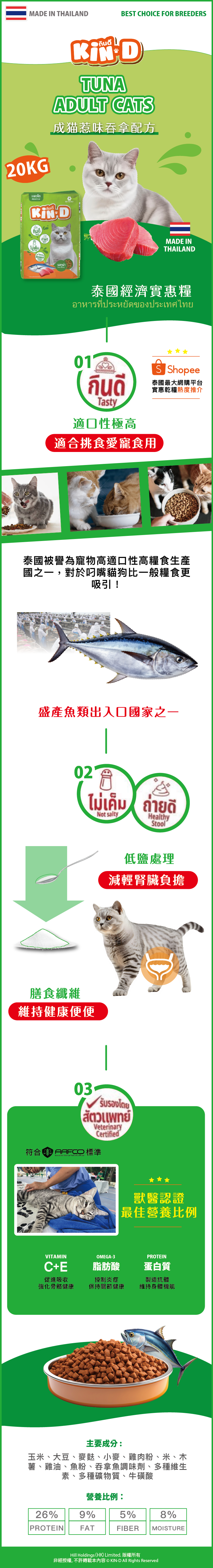 泰國 Kin-D 滋味吞拿 貓糧 20kg (BAO-9158)