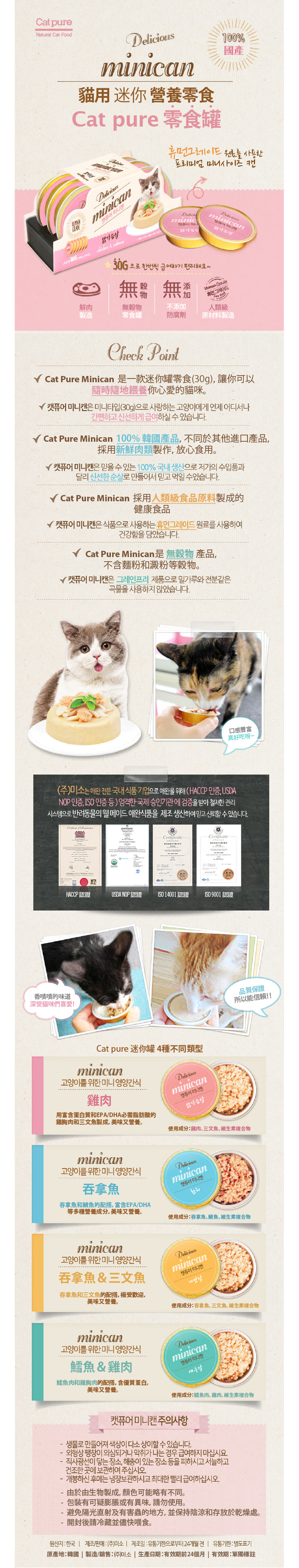 -Cat Pure Minican 是一款迷你罐零食,讓你可以隨時隨地餵養你心愛的貓咪。