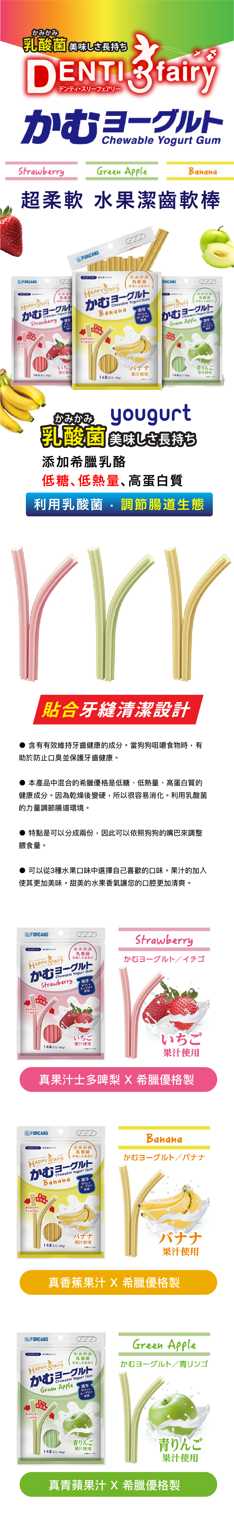 Forcans Happy 3 Fairy乳酸菌潔齒條-士多啤梨14本入 90g(FCS-5429)