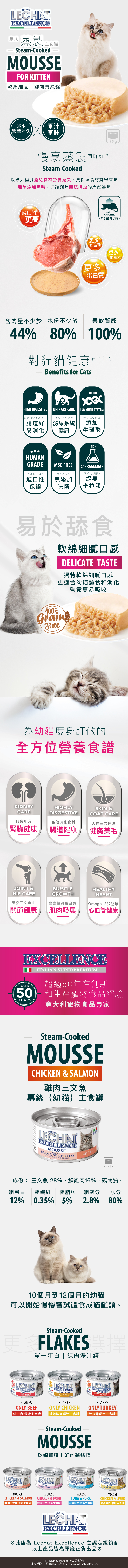 Lechat Exc.鮮雞肉三文魚 慕絲 (幼貓)主食罐 85g (LE-0936)