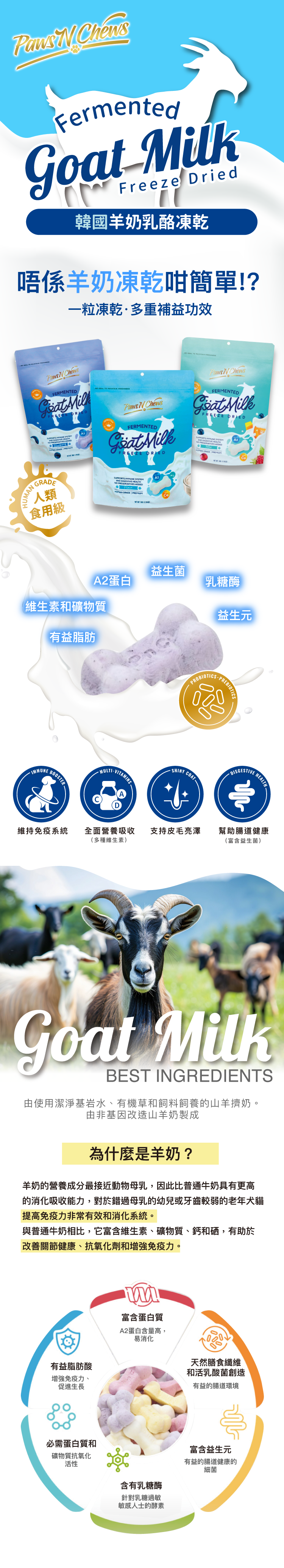 韓國Paws N Chew 益生菌 發酵山羊奶凍乾 藍莓味 50g (PNC-0522)