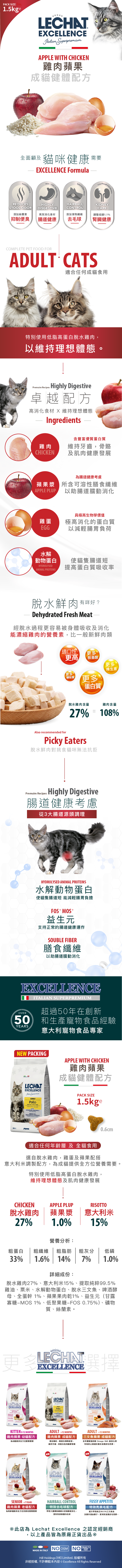 Lechat Excellence丨雞肉蘋果成貓健體配方1.5kg (LE-0158)